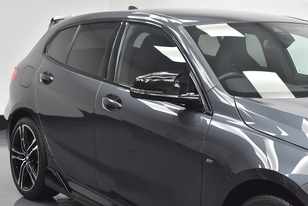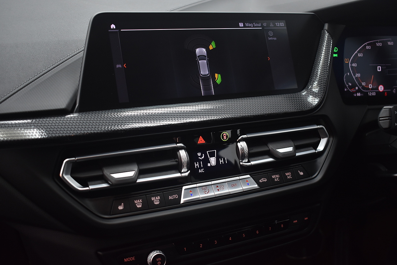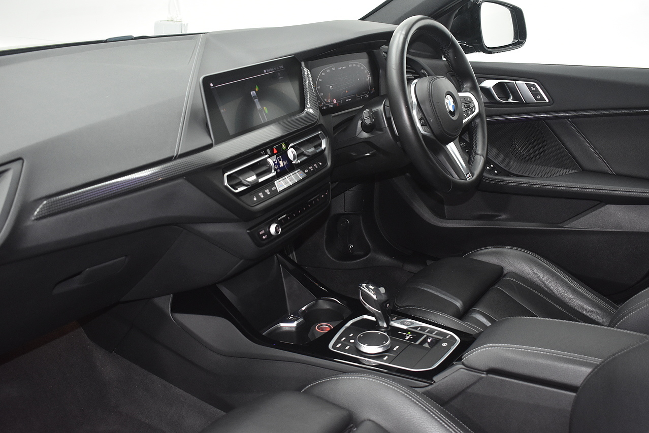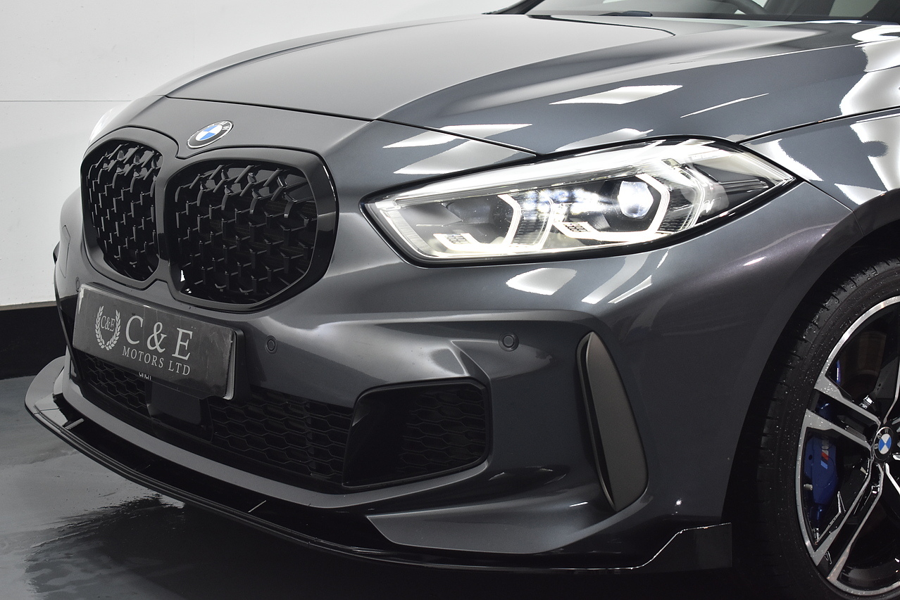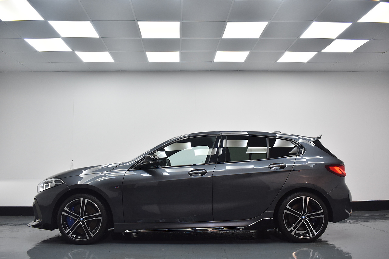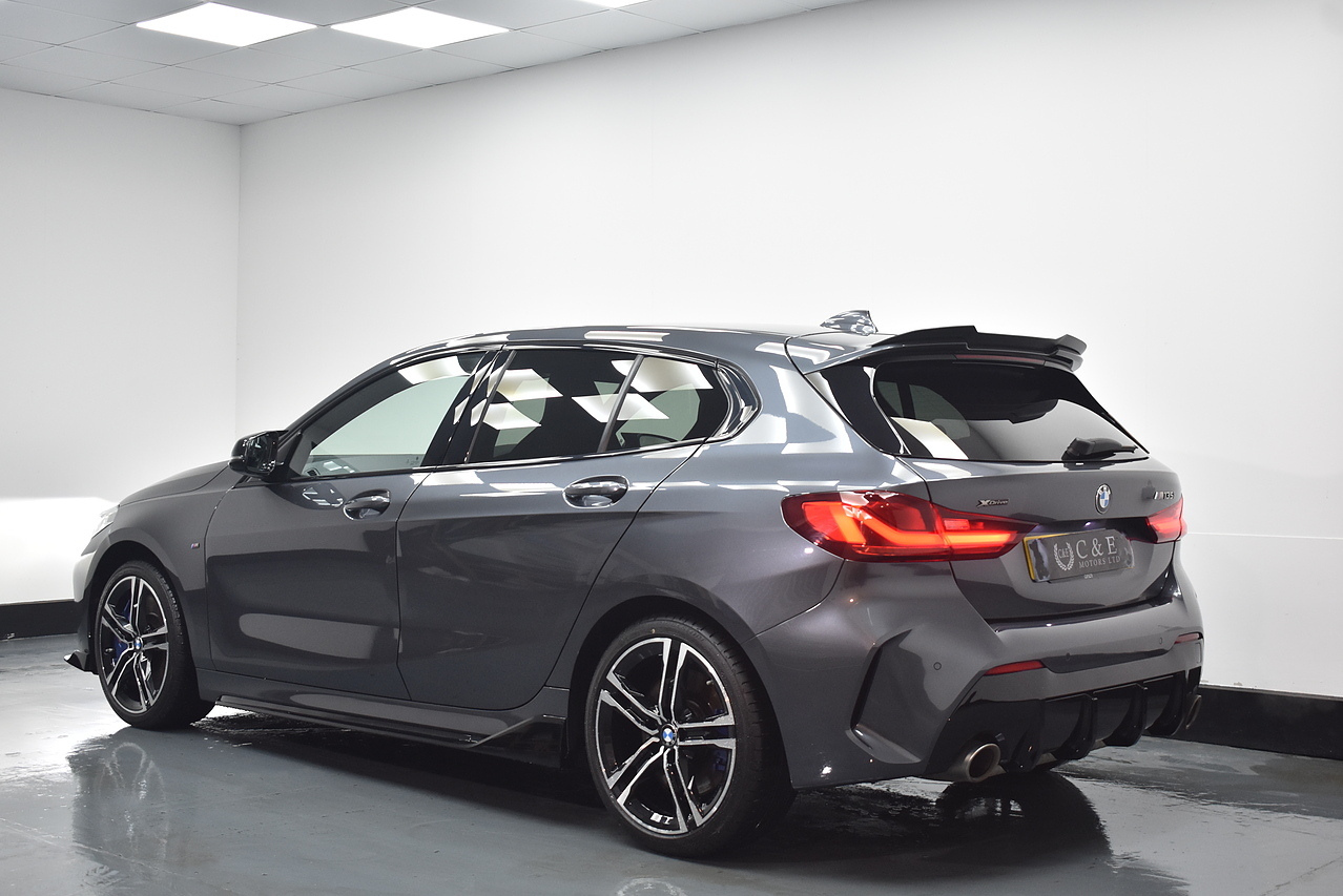 This 2021 BMW 1 Series M135i boasts an MOT valid until August 2026, offering excellent peace of mind. This Euro 6 compliant 2.0 litre petrol model features a four wheel drive drivetrain and has a partial service history, with its last service completed on 24 July 2025 at 31968 miles. Inside, you will find perforated Dakota leather upholstery in black with grey highlights, heated seats for the driver and front passenger, and Bluetooth connectivity for audio streaming. For convenience, it includes cruise control with brake function and speed limiter, as well as front and rear park distance control.