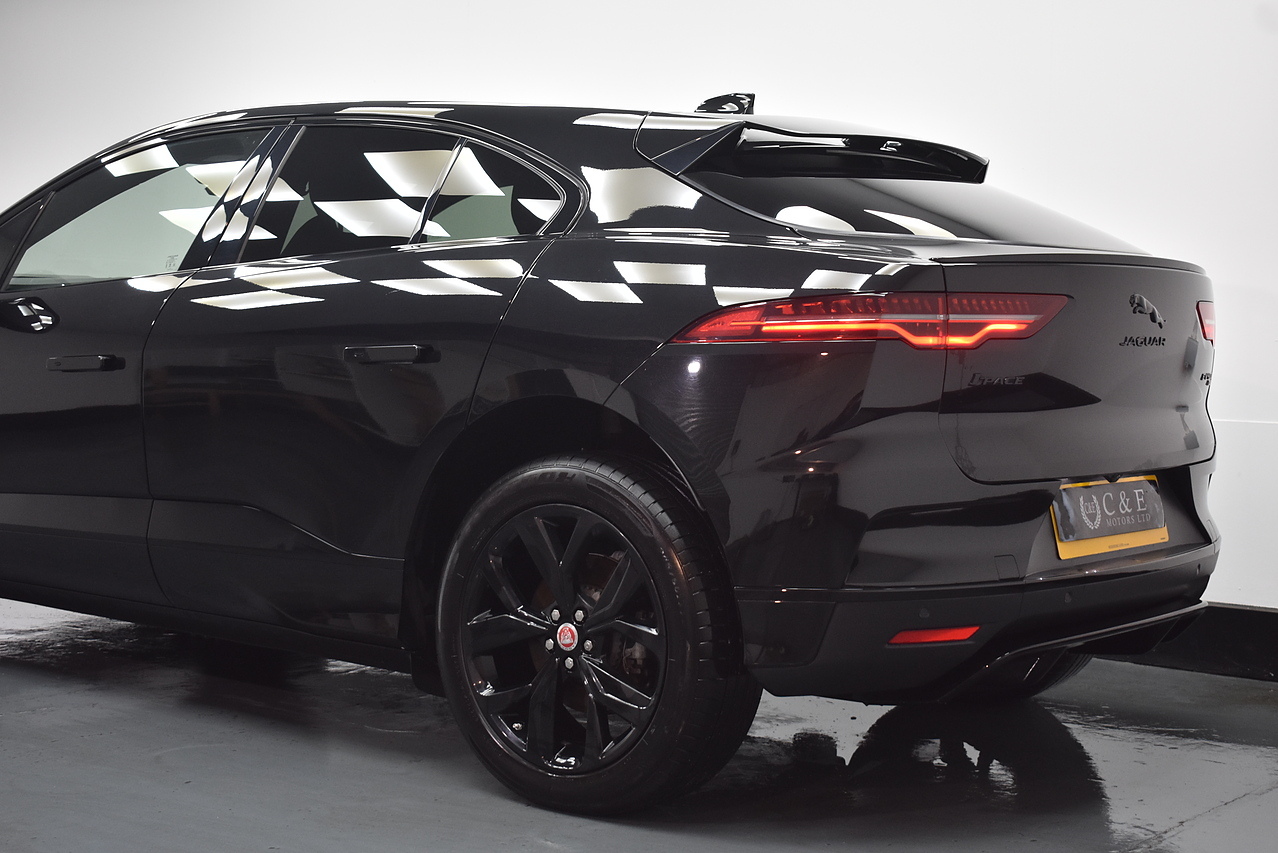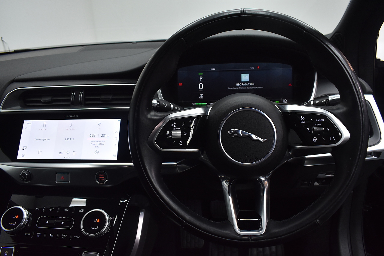 This 2021 Jaguar I-PACE 400 Black has been owned by only one person and was last serviced on 30 January 2024 at 23,000 miles, with a partial service history. This striking electric vehicle boasts a four wheel drive drivetrain and a substantial 90 kWh battery, offering a maximum range of 279 miles when new. Inside, you'll find a heated steering wheel for those chilly mornings, a rear camera to aid with parking, and seamless integration with Android Auto. For added safety and convenience, it also features keyless entry and blind spot assist.