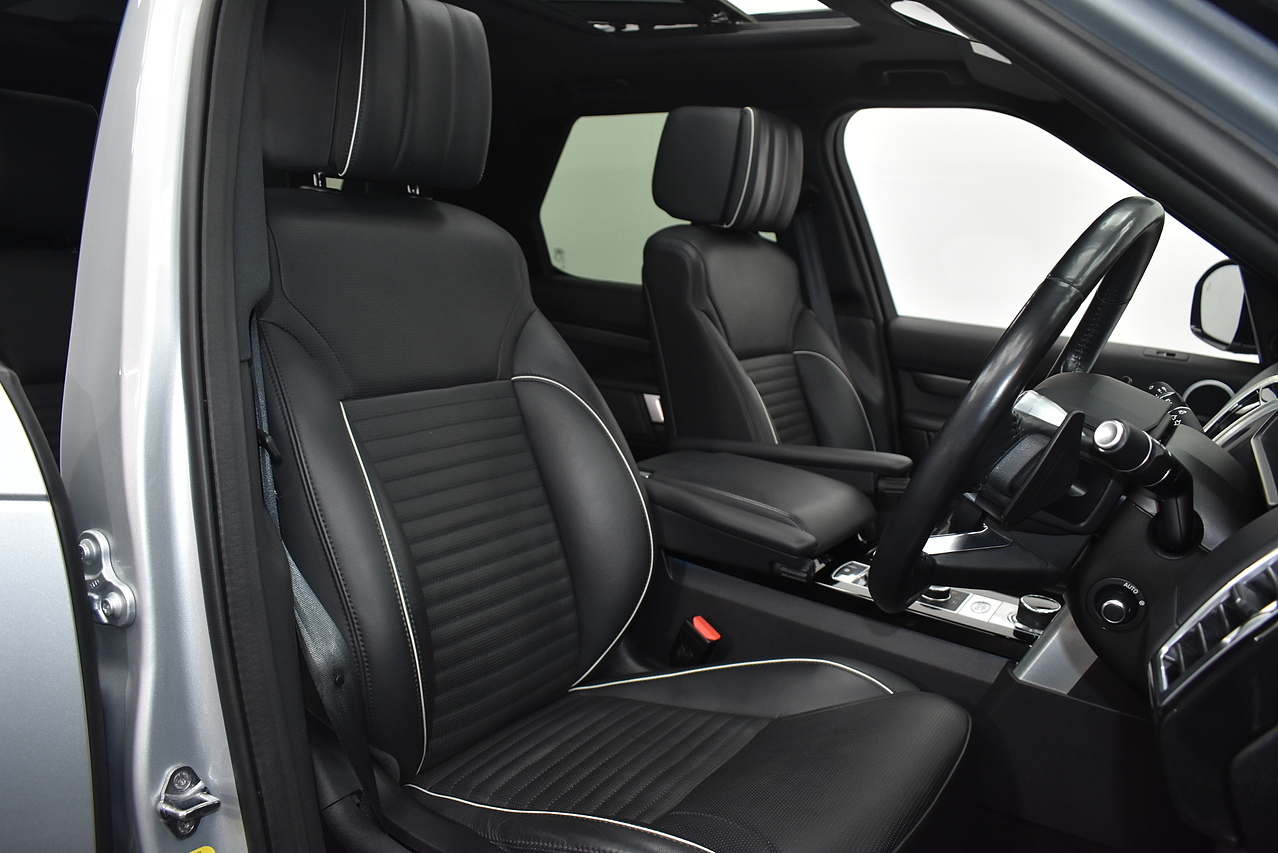 This 2019 Land Rover Discovery SD V6 HSE Luxury boasts exceptionally low mileage for its age, having covered just 45,564 miles, and benefits from a full service history with its last service completed on 2025-10-13 at 43,587 miles and 5 previous, alongside an MOT valid until August 2026. This Euro 6 compliant, four wheel drive model features a powerful 3.0L Diesel engine and offers comfortable seating for seven occupants. The HSE Luxury trim is enhanced with a striking Black Roof Rails and Black Pack, a comprehensive 360 Degree Parking Aid with camera system, and a premium Meridian Surround Sound System with Bluetooth connectivity. Automatic headlights add to the convenience of this well appointed vehicle.