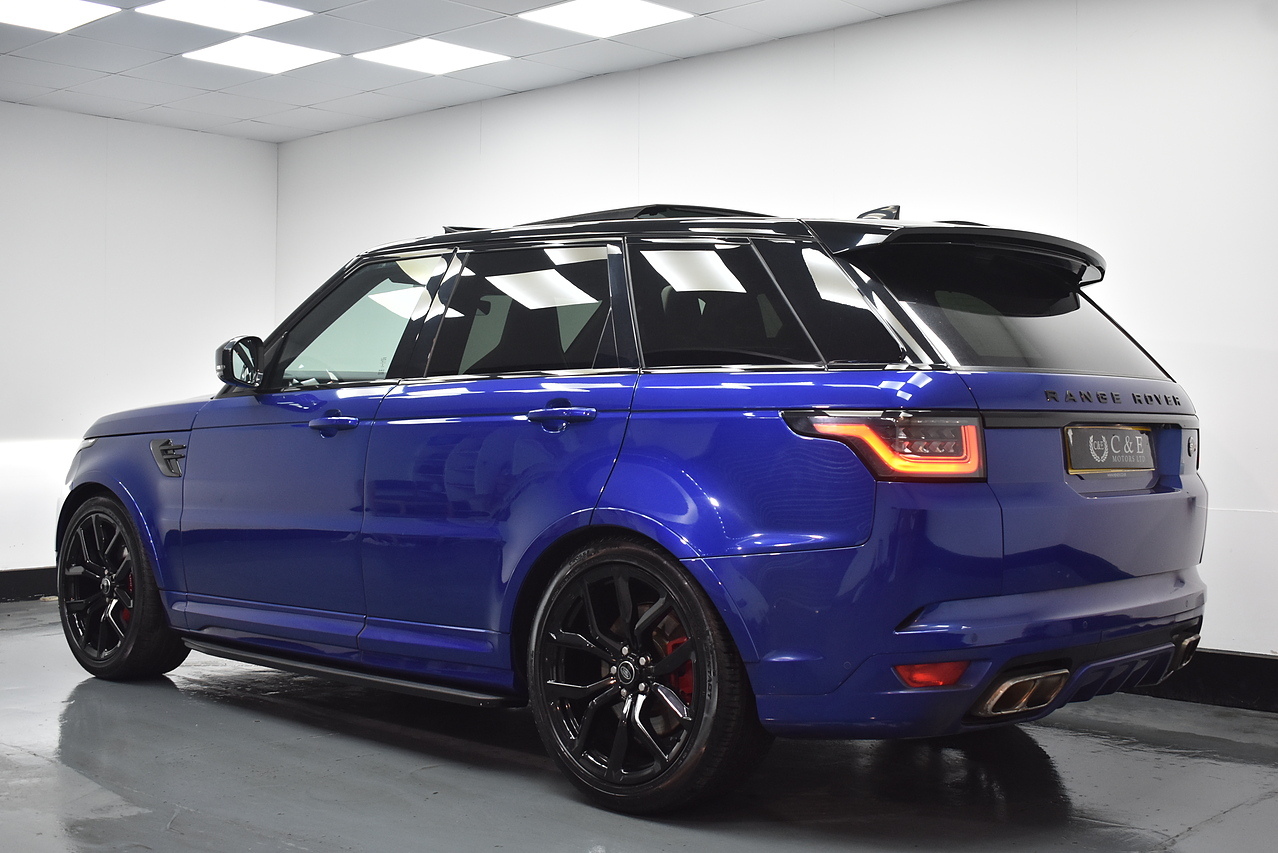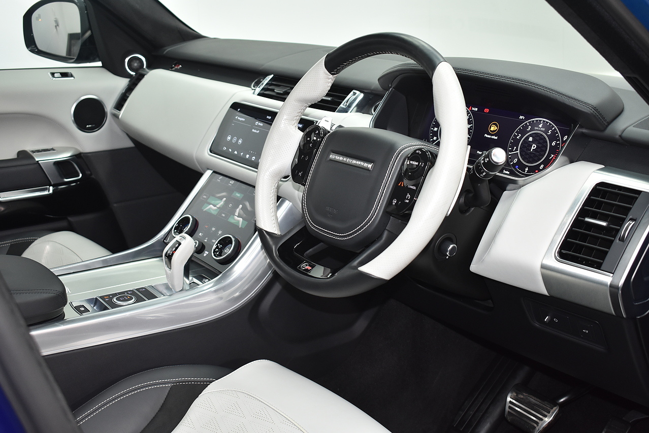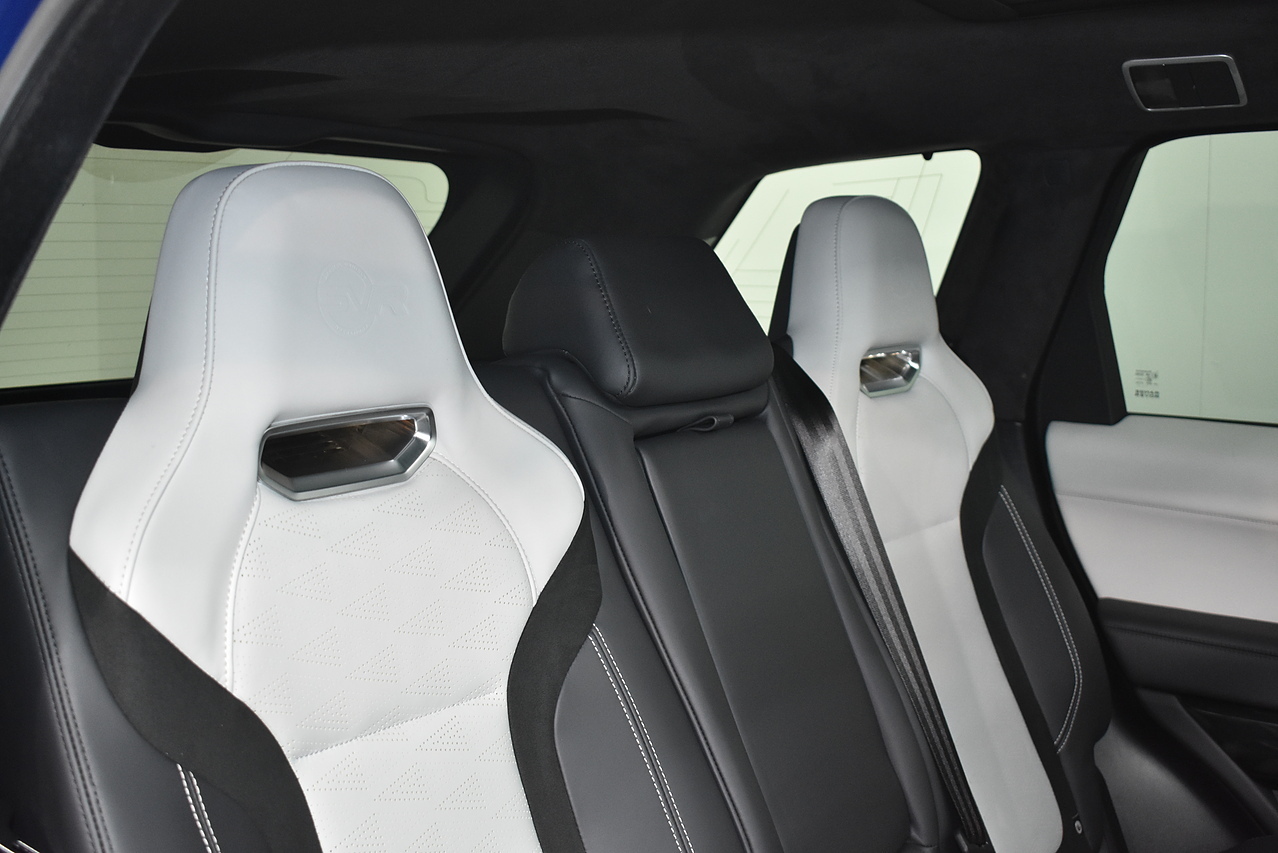 The Range Rover Sport SVR is designed for performance, accelerating from 0 to 60mph in a remarkable 4.3 seconds, showcasing its dynamic capabilities. This acceleration figure is a key indicator of how this vehicle outperforms many others in its class. The generous boot space provides ample room for luggage or equipment, making it a practical choice for various needs.