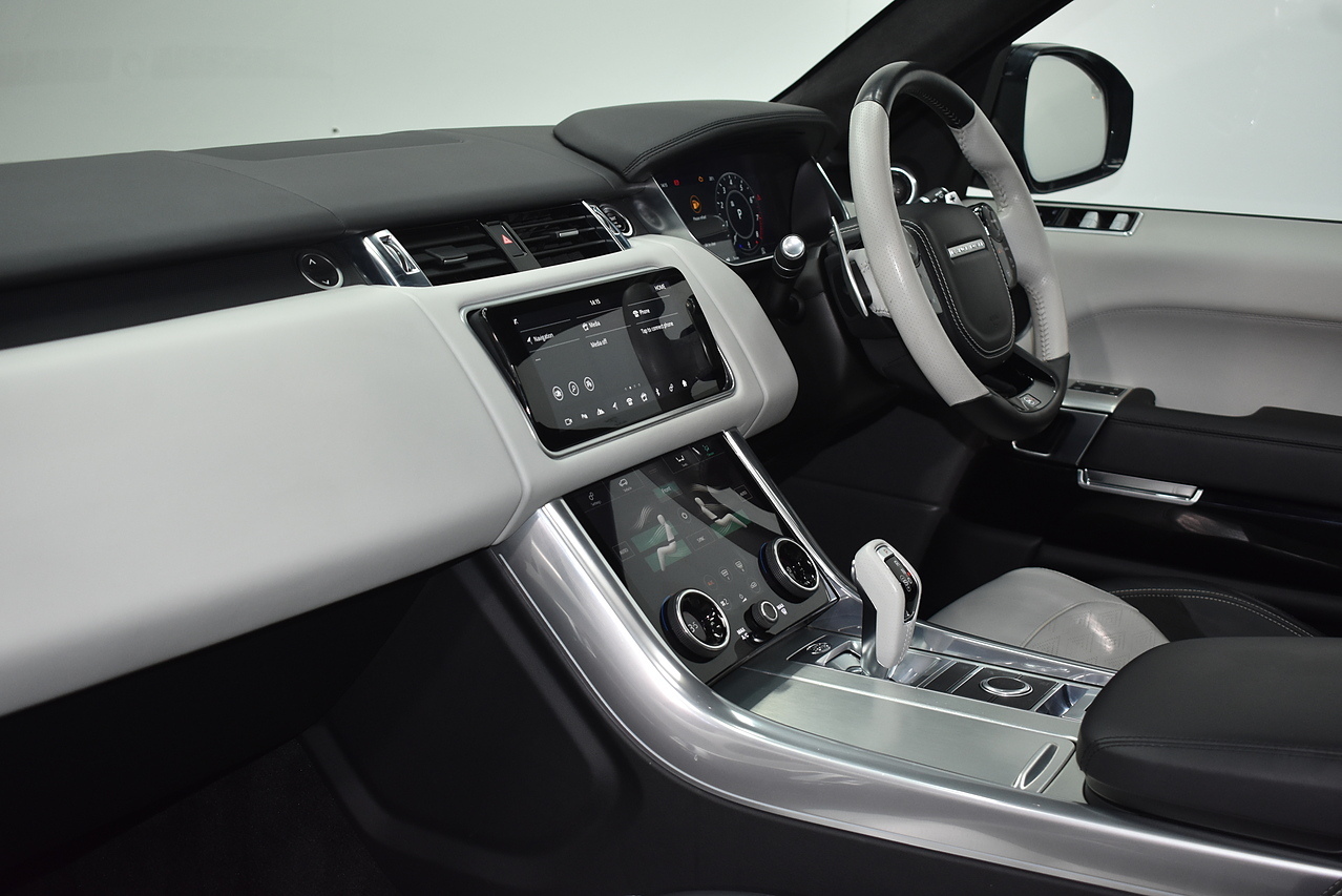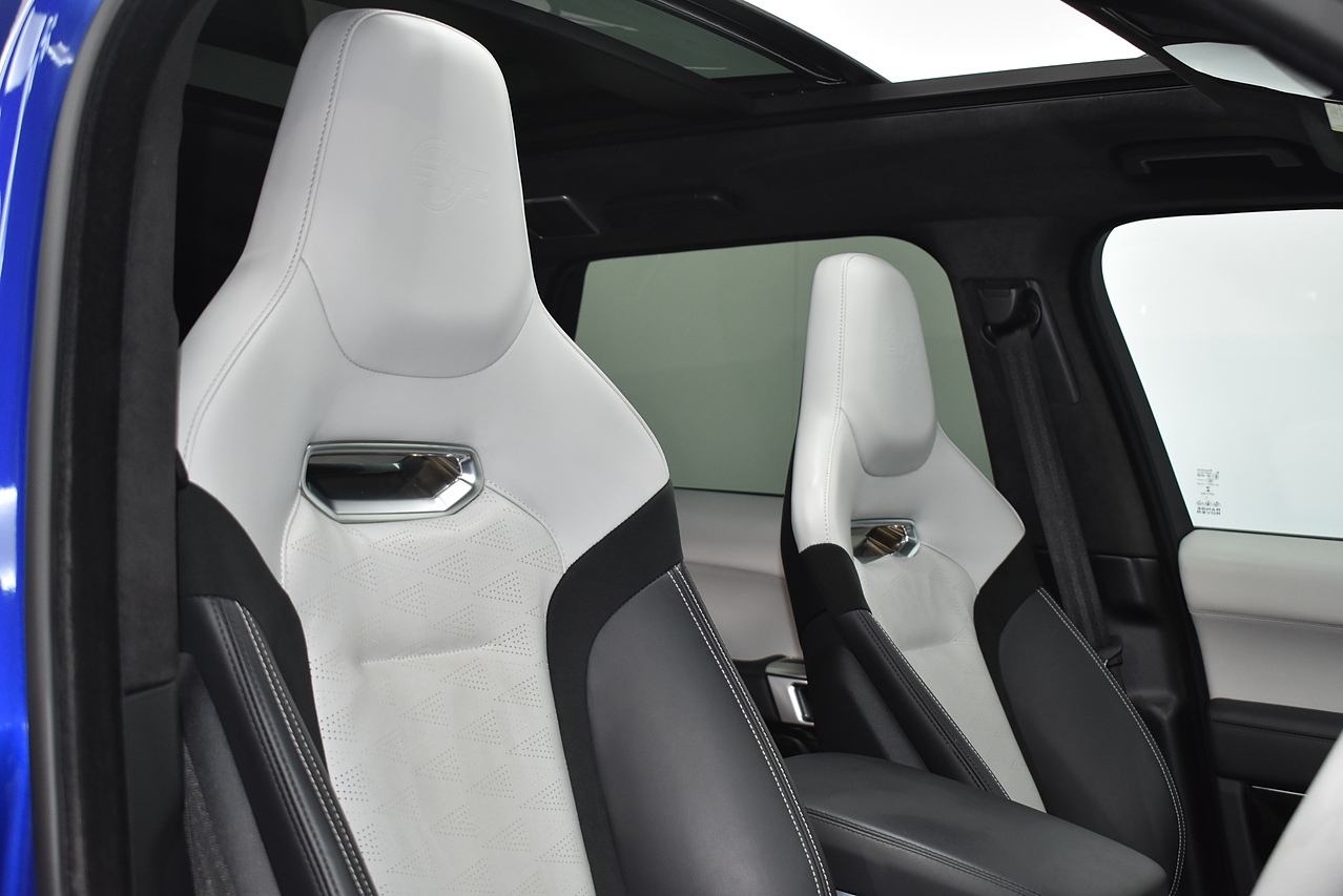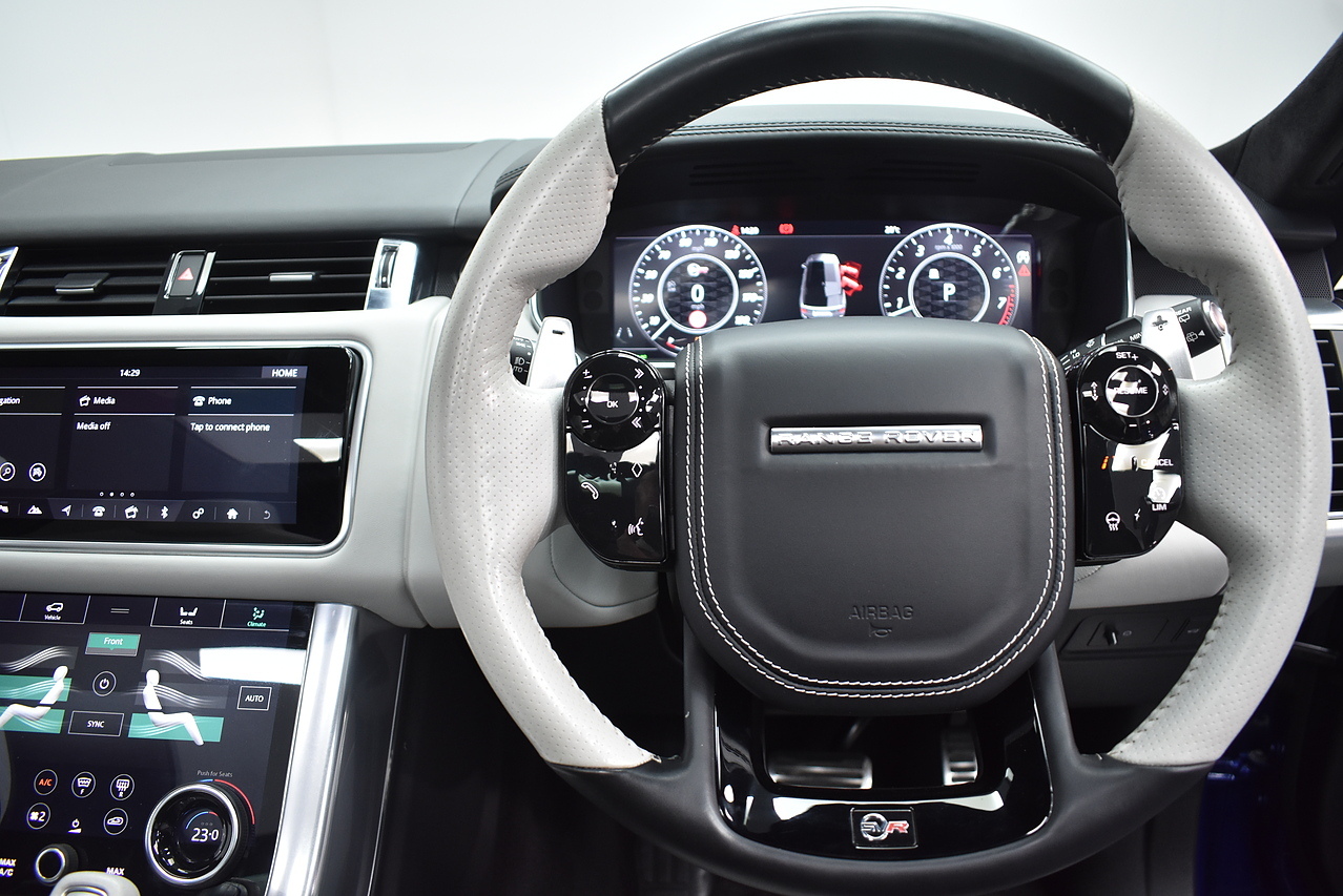 The Range Rover Sport SVR is designed for performance, accelerating from 0 to 60mph in a remarkable 4.3 seconds, showcasing its dynamic capabilities. This acceleration figure is a key indicator of how this vehicle outperforms many others in its class. The generous boot space provides ample room for luggage or equipment, making it a practical choice for various needs.